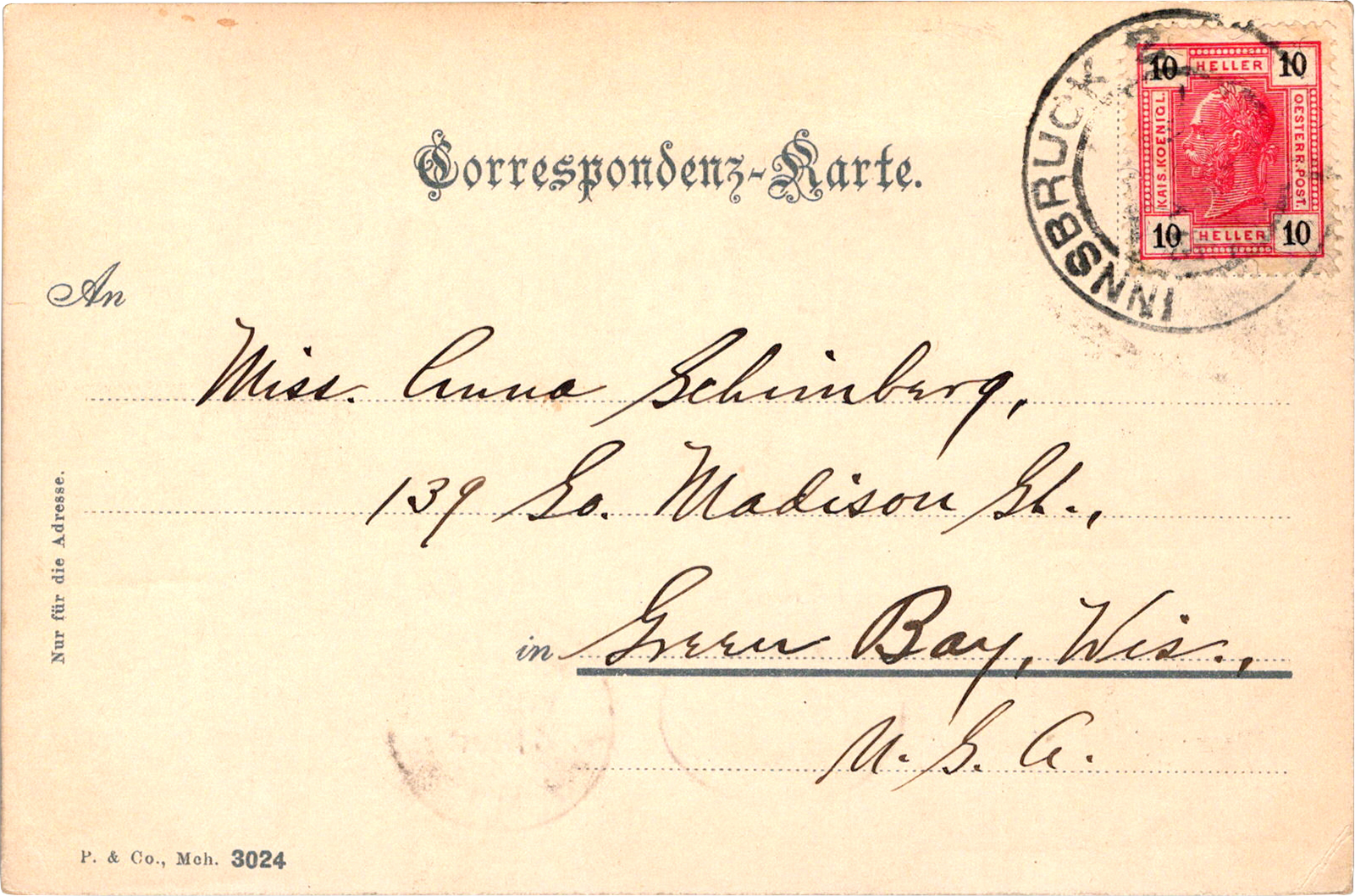 Innsbruck, Austria Innsbruck Dated: Apr 20 1905 From: Edward Schimberg To: Anna Schimberg Location: Innsbruck, Tyrol, Austria Publisher: Stengel & Co