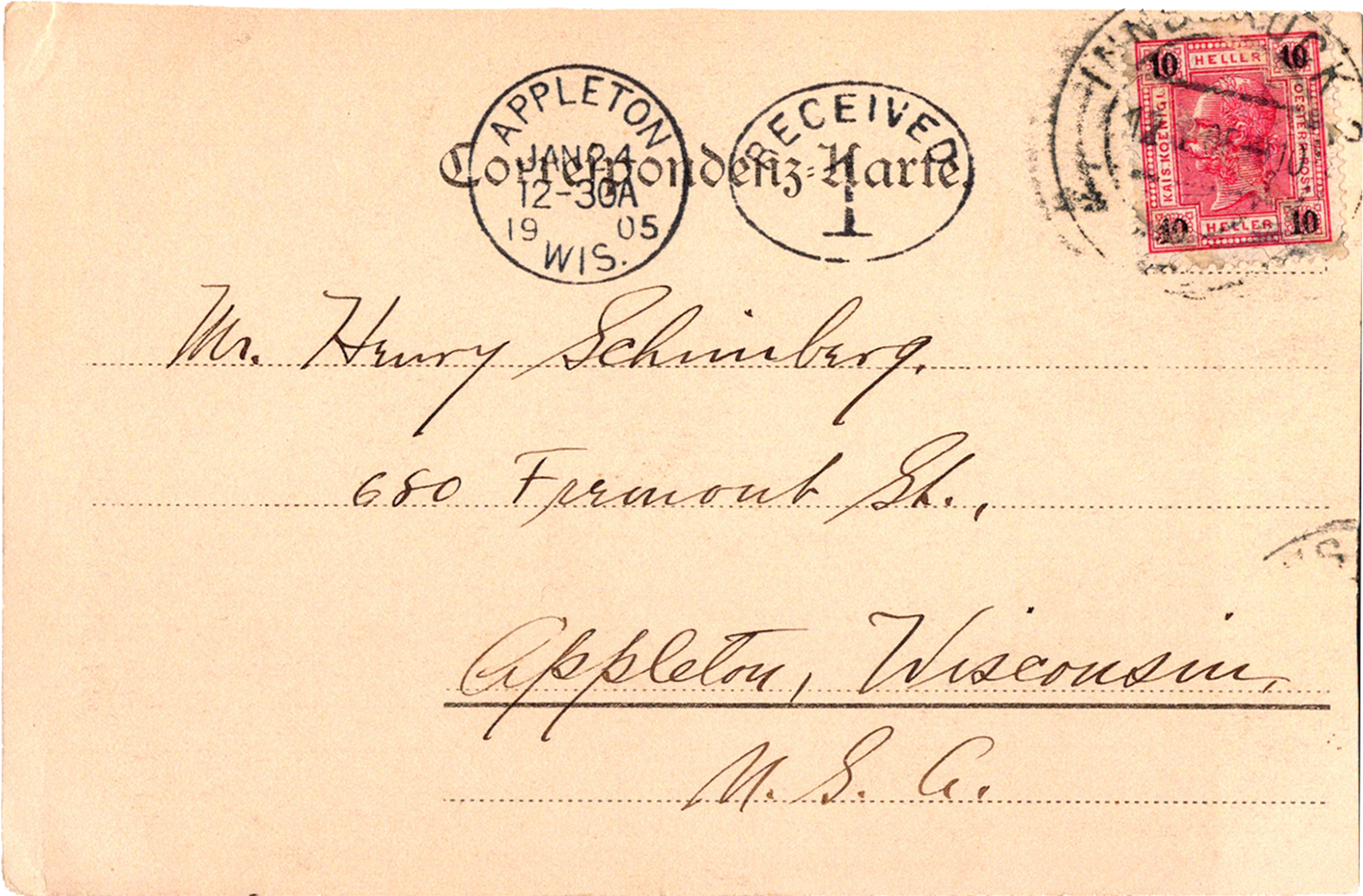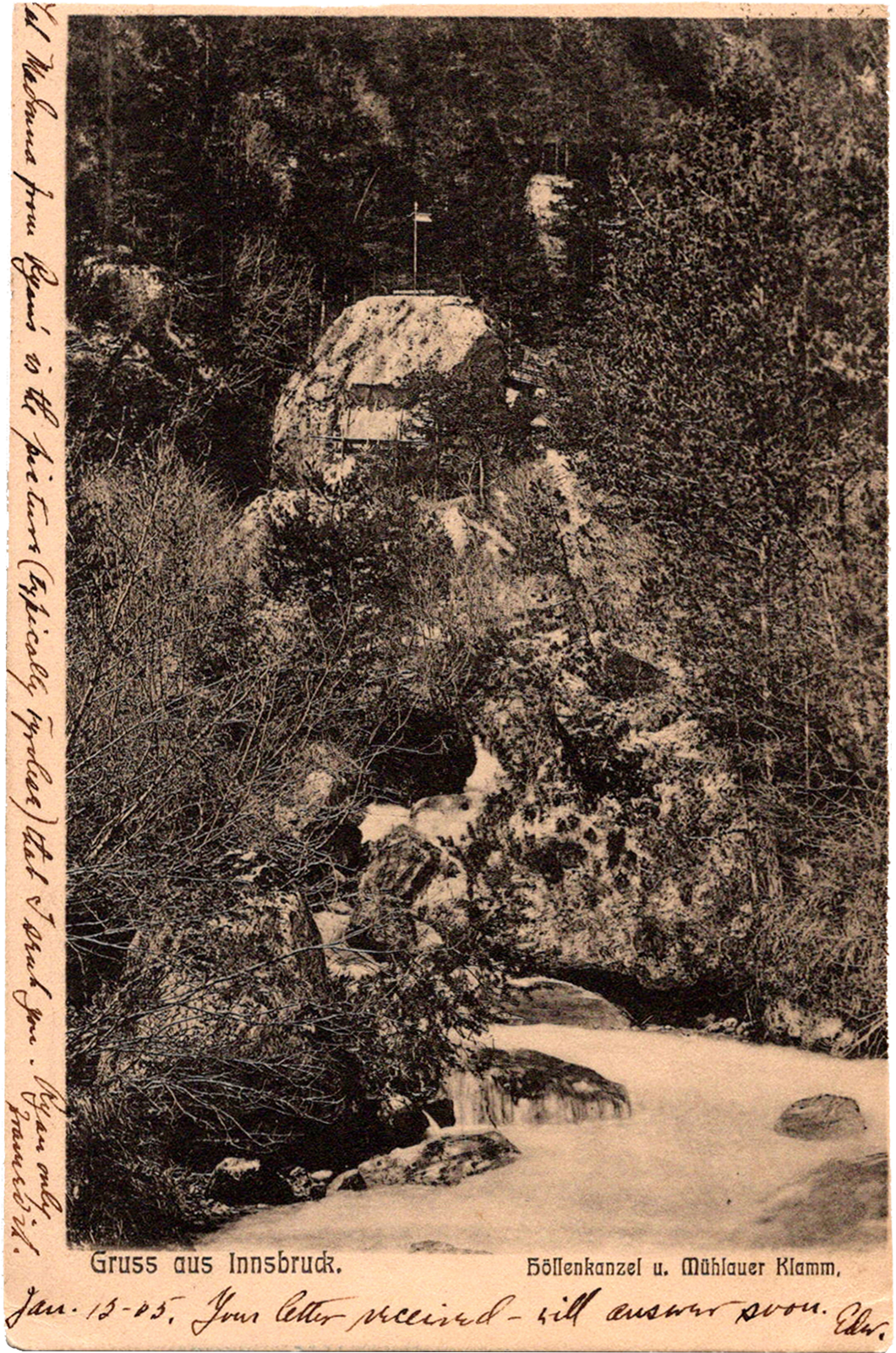 Höllenkanzel u. Mühlauer Klamm, Innsbruck, Austria Innsbruck. Höllenkanzel u. Mühlauer Klamm. Dated: Jan 12 1905 From: Edward Schimberg To: Henry S. Schimberg Location: Innsbruck, Tyrol, Austria