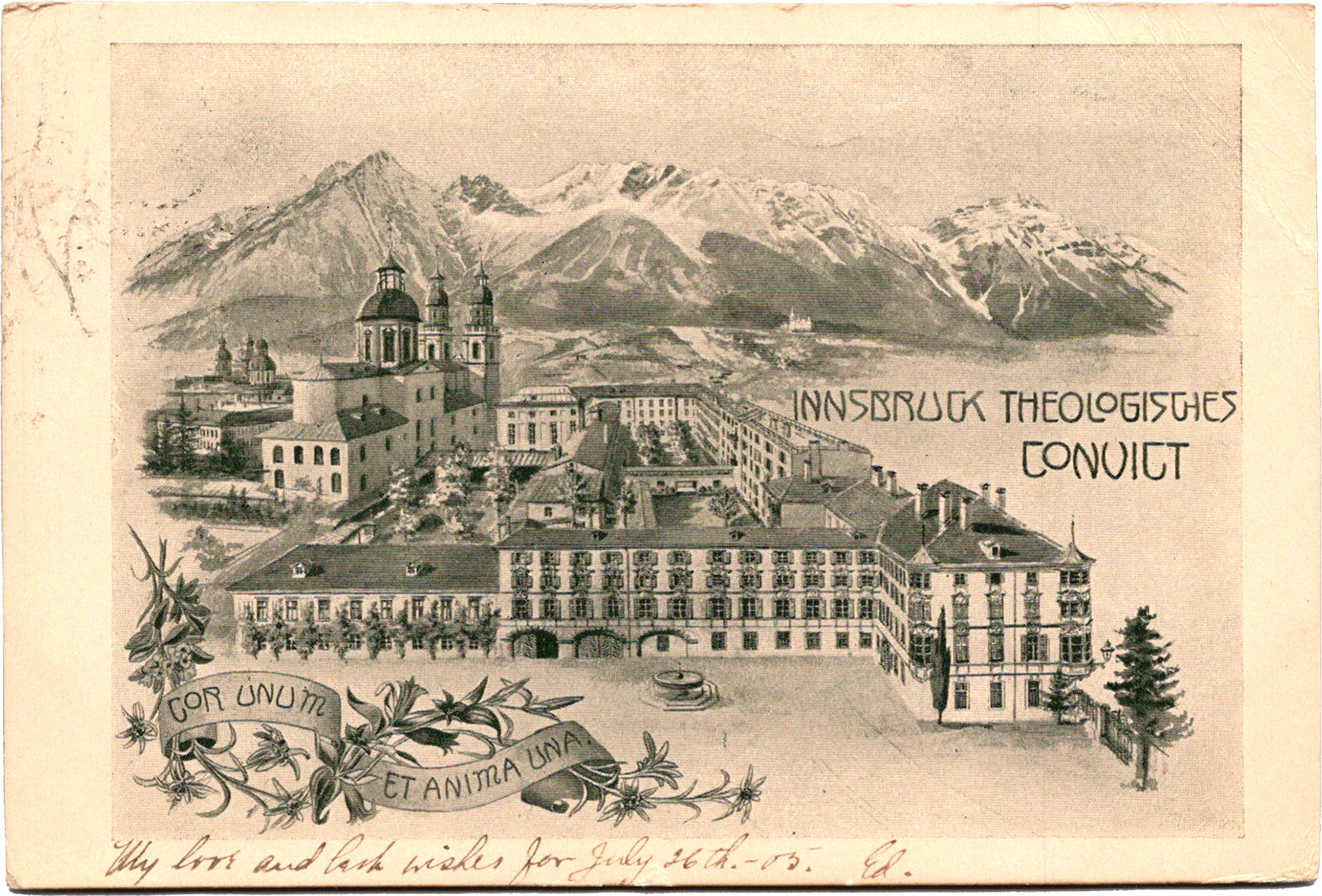 Innsbruck Theologisches Convict, Austria Innsbruck Theologisches Convict Dated: Jul 26 1905 From: Edward Schimberg To: Anna Schimberg Location: Innsbruck, Tyrol, Austria