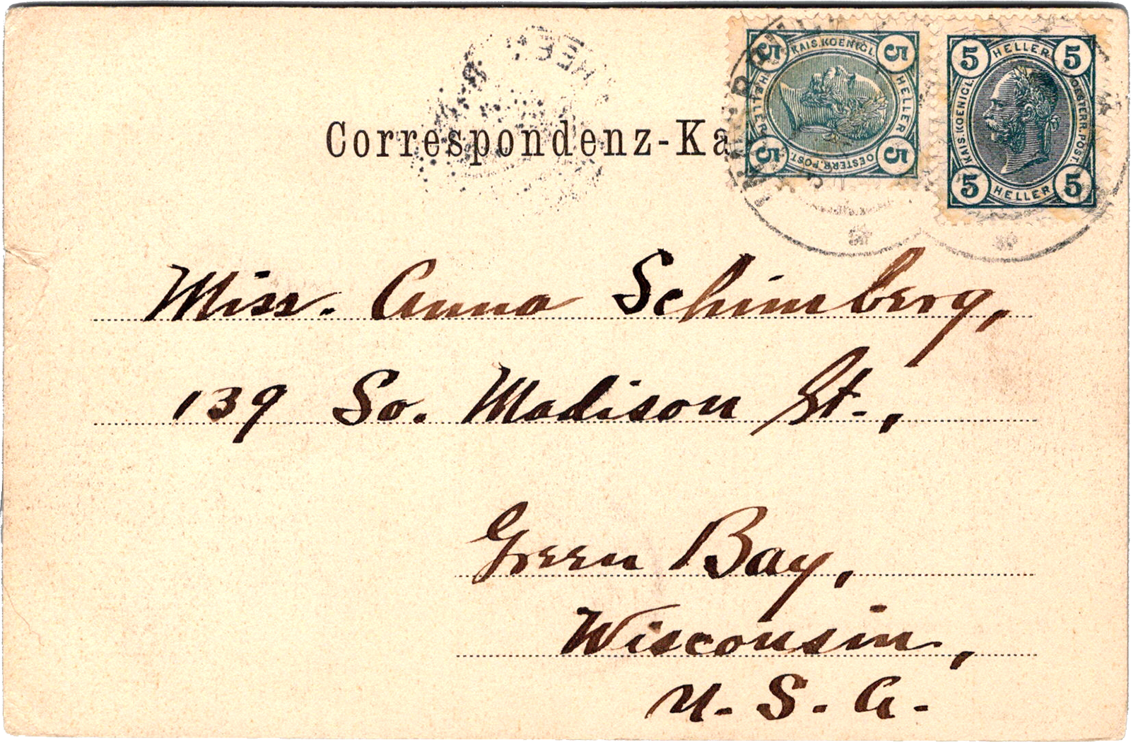 Schloss Amras mit Jnnsbruck, Austria Schloss Amras mit Jnnsbruck Dated: Oct 29 1905 From: Edward Schimberg To: Anna Schimberg Location: Innsbruck, Tyrol, Austria Publisher: Fritz Gratl