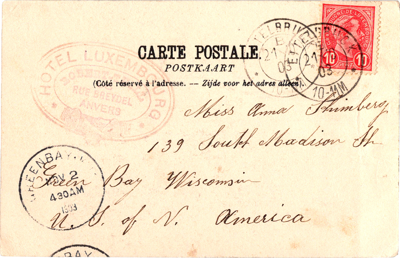 La Cathédrale, Anvers, Belgium Anvers. La Cathédrale. Dated: Oct 13 1903 From: Henry S. Schimberg To: Anna Schimberg