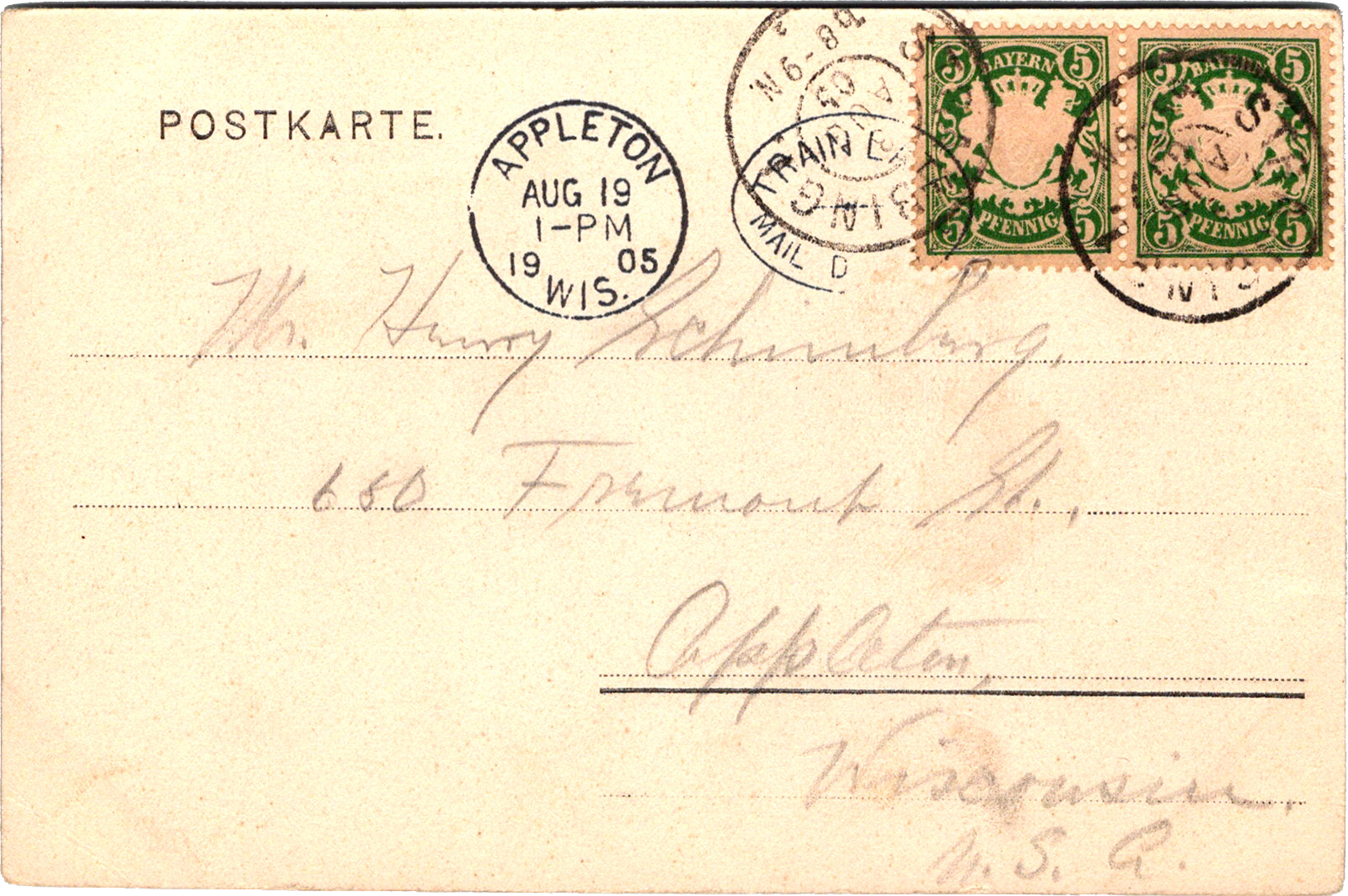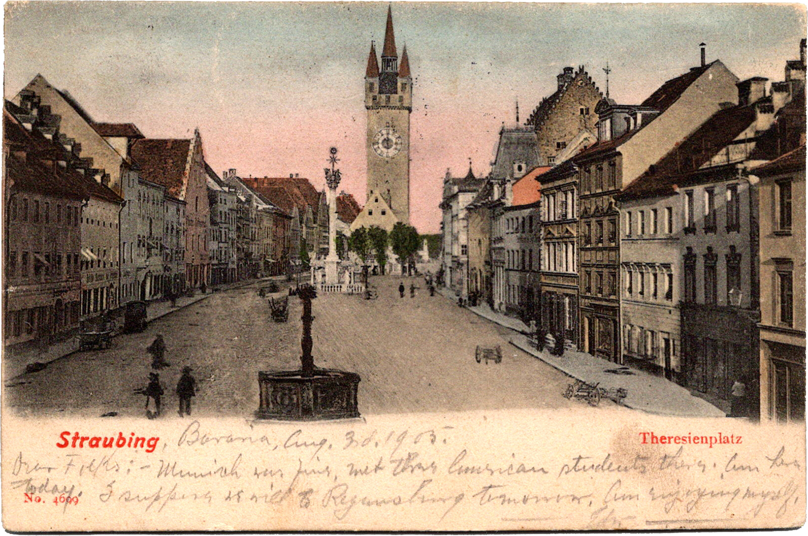 Theresienplatz, Straubing, Germany Straubing: Theresienplatz Dated: Aug 3 1905 From: Edward Schimberg To: Henry S. Schimberg, Josephine Frantz Schimberg
