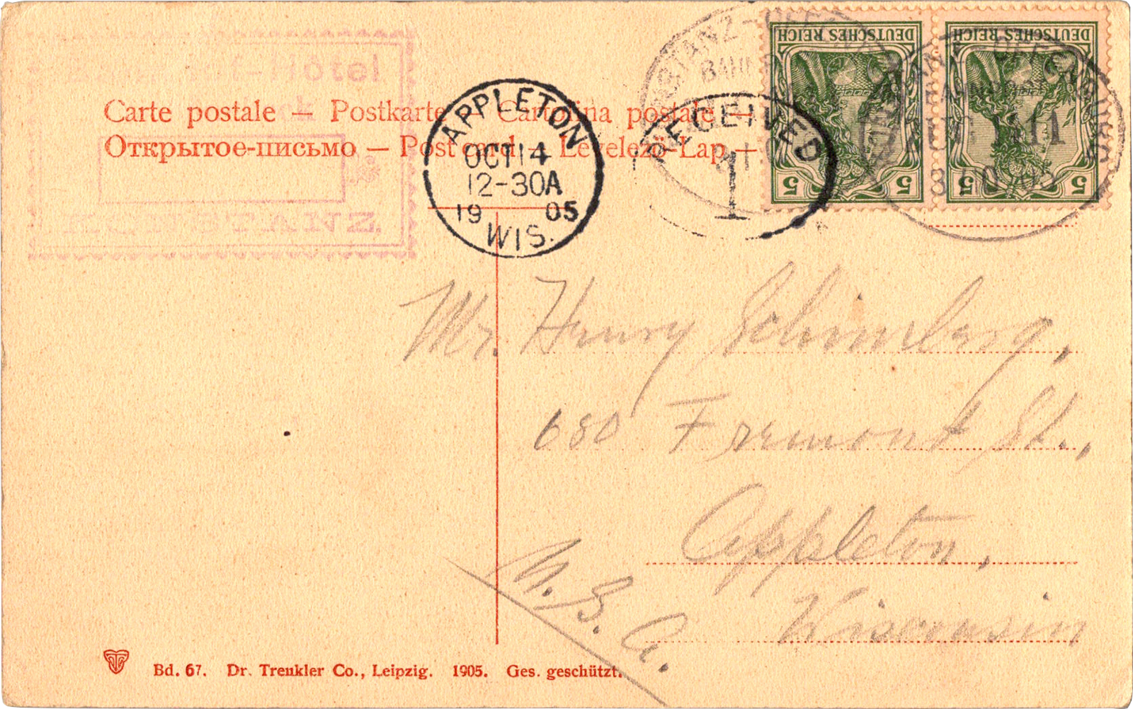 Bregenz, Austria Bregenz. Dated: Oct 3 1905 From: Edward Schimberg, Martin “D.D.” “Dee” Jaekels, Whilken To: Henry S. Schimberg, Josephine Frantz Schimberg Location: Bregenz, Vorarlberg, Austria Publisher: Th. Immler