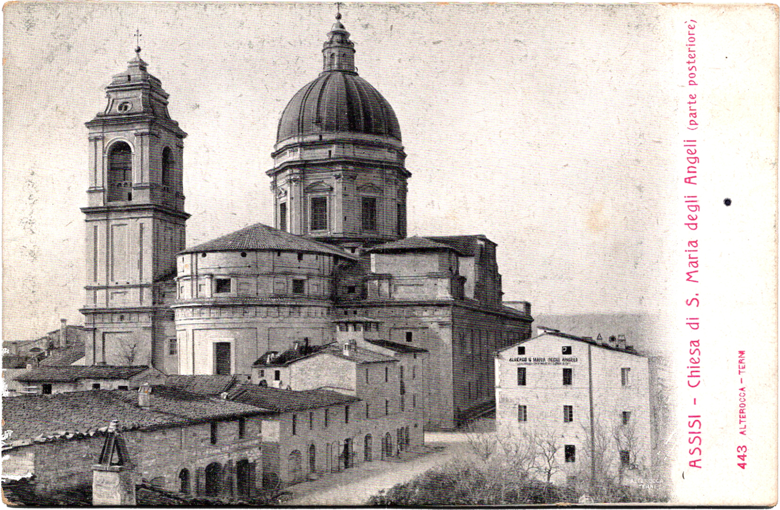 Chiesa di S. Maria degli Angeli, parte posteriore, Assisi, Italy Assisi – Chiesa di S. Maria degli Angeli (parte posteriore) Estimated Date: Mar 24 1907 Location: Assisi, Umbria, Italy Publisher #: 443