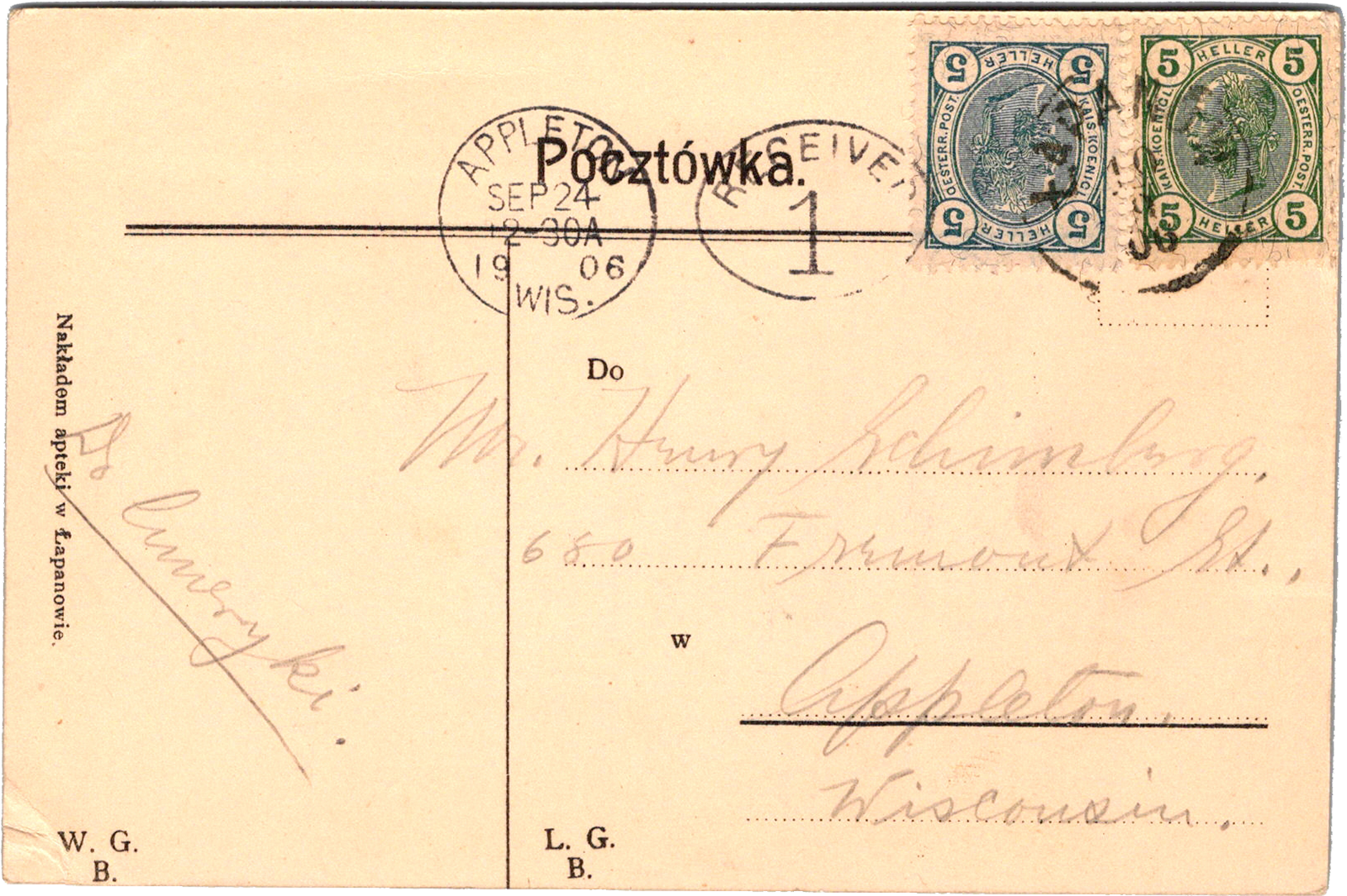 Kościol, Szkola w Łapanowie, Poland Kościol w Łapanowie, Szkola w Łapanowie Dated: Sep 9 1906 From: Edward Schimberg To: Henry S. Schimberg Referenced: H. Zegarlinski Location: Łapanów, Lesser Poland, Poland Publisher #: None