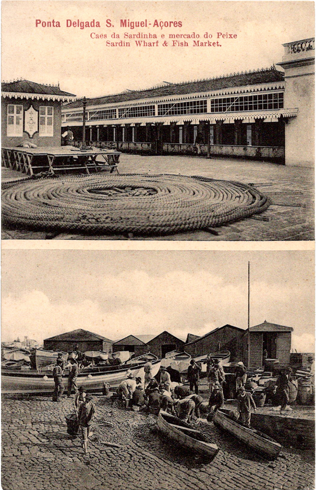 Sardin Wharf & Fish Market, Ponta Delgada, S. Miguel, Açores, Portugal Sardin Wharf & Fish Market, Ponta Delgada, S. Miguel, Açores, Portugal Estimated Date: Aug 1907 Location: Sao Miguel, Azores, Portugal Publisher #: None