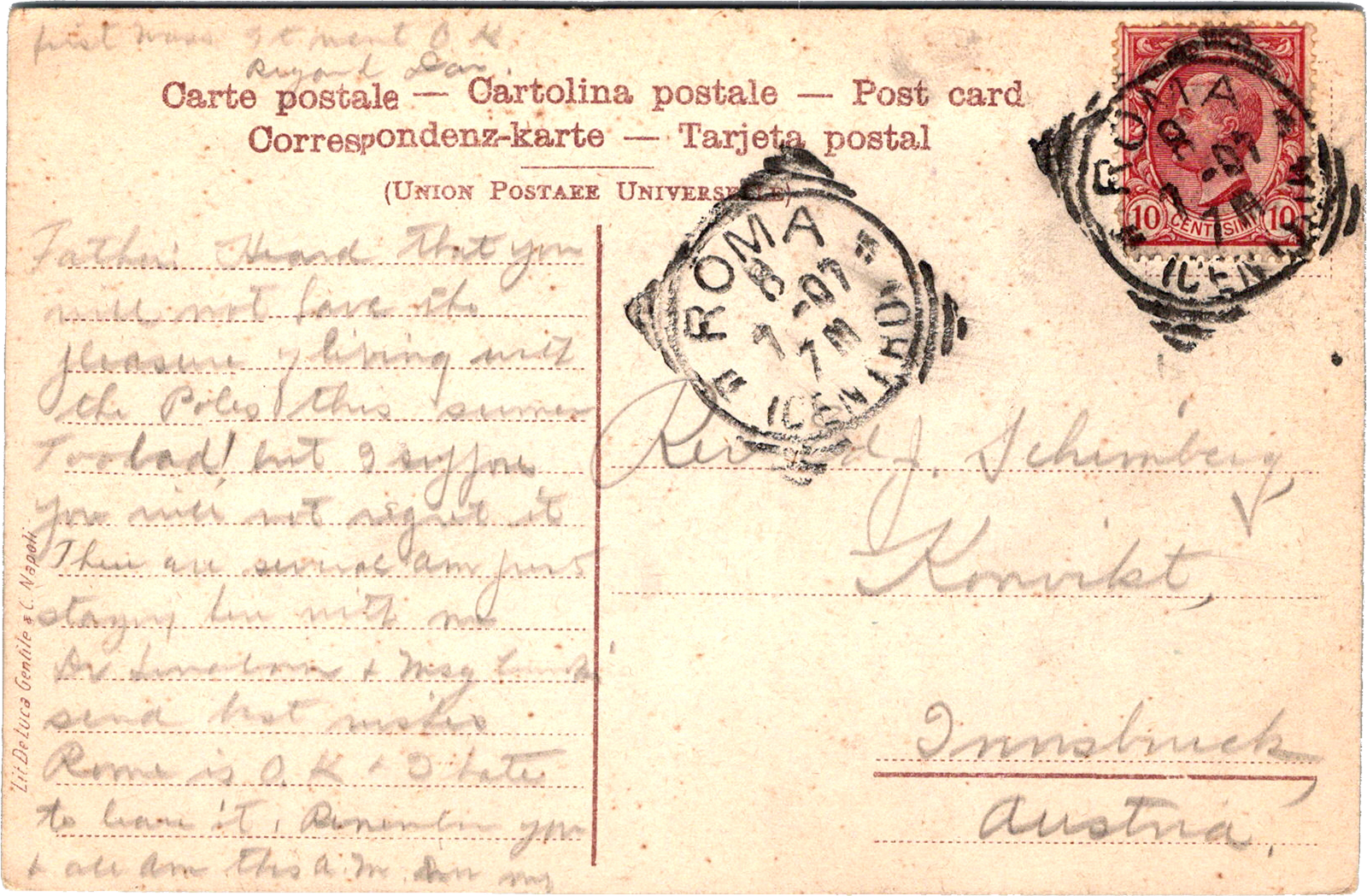 Basilica di S. Giovanni in Laterano, Roma, Italy Roma – Basilica di S. Giovanni in Laterano. Postmarked: Jul 8 1907 From: Dan Hyland To: Edward Schimberg Location: Rome, Roma, Italy Publisher #: None