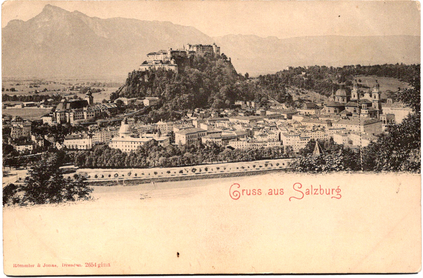 Gruss aus Salzburg, Austria Gruss aus Salzburg Estimated Date: Jul 30 1906 From: Edward Schimberg To: Henry S. Schimberg Location: Salzburg, Land Salzburg, Austria Publisher #: 2654