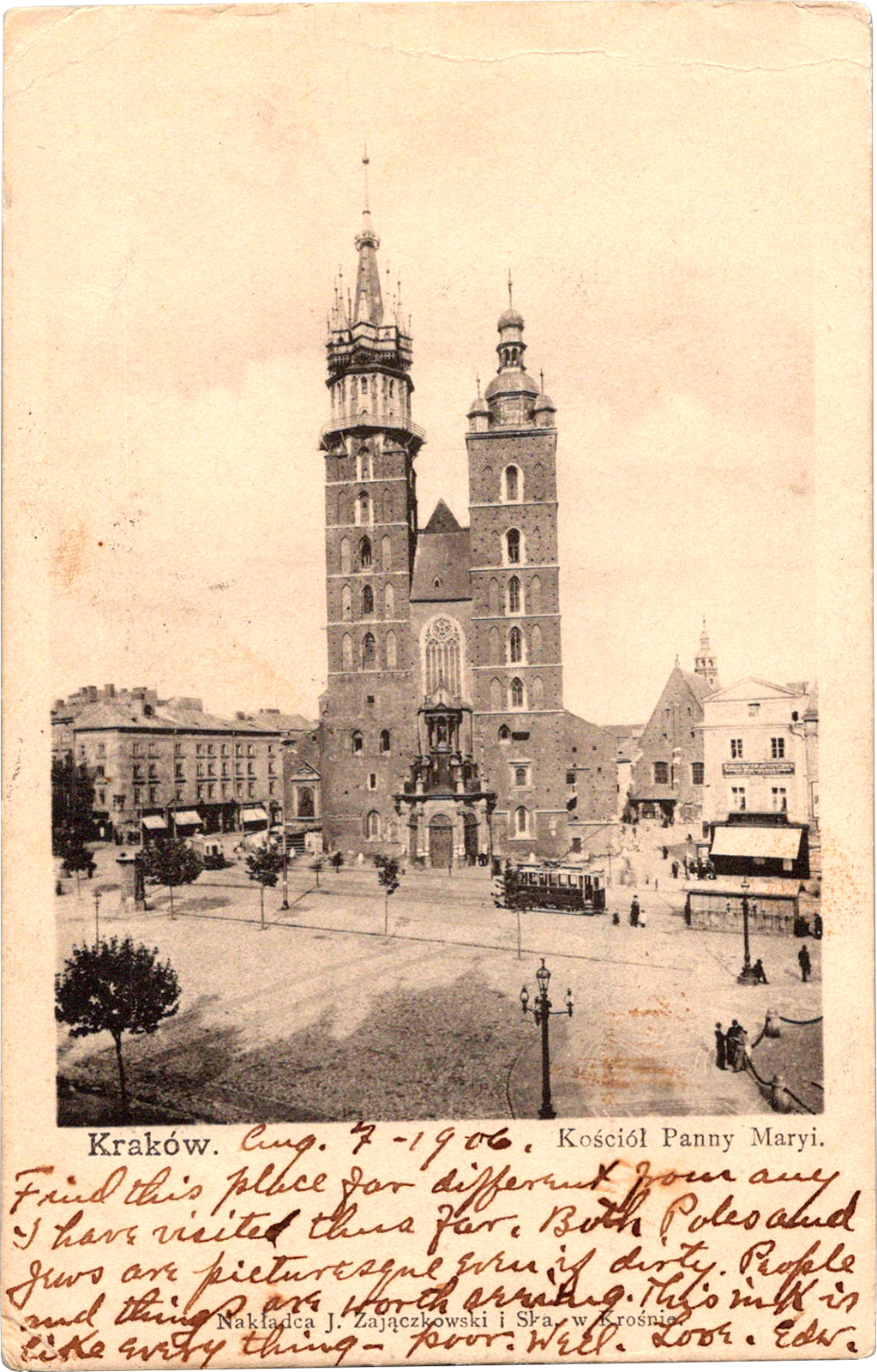 Kościół Panny Maryi, Kraków, Poland Kraków. Kościół Panny Maryi. Dated: Aug 7 1906 From: Edward Schimberg To: Henry S. Schimberg Location: Kraków, Kraków, Poland Publisher #: None