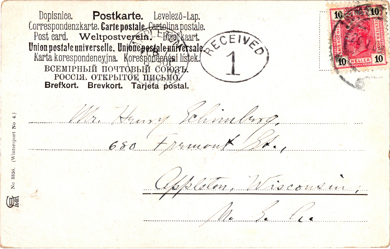 Bahn frei! Bahn frei! Dated: Jan 25 1906 From: Edward Schimberg To: Henry S. Schimberg Publisher: Carl Andelfinger & Co